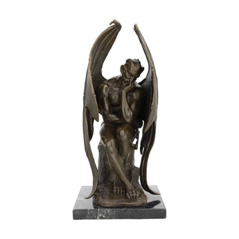 Uma escultura em bronze impressionante de uma figura pensativa de Satanás, capturada numa pose silenciosa e contemplativa. A modelagem detalhada e a presença imponente criam um ponto focal dramático com uma sensação escultórica intemporal. Ideal para colecionadores e interiores marcantes que abraçam o simbolismo e a arte expressiva.