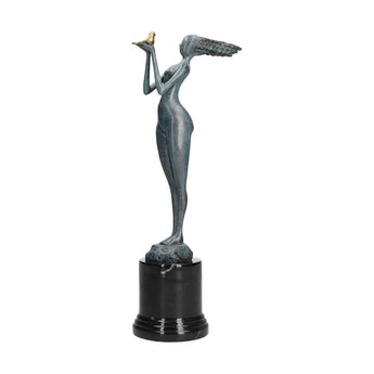 Escultura Modernista de Mulher em Bronze com Pomba | 32,6 cm / 12,8 in | Símbolo de Paz e Graça
