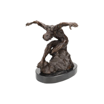 Uma impressionante escultura modernista em bronze de um bailarino masculino nu, concebida com movimento dinâmico e forma expressiva. Esta obra destaca força, equilíbrio e fluidez, tornando-se uma peça de destaque arrojada para qualquer interior contemporâneo ou coleção de arte.