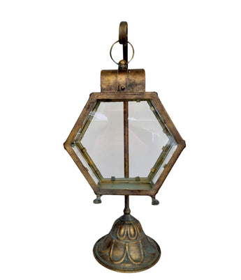Esta bela lanterna de metal de alta qualidade é uma peça decorativa impressionante que combina artesanato com elegância intemporal. Apresentando uma lanterna em forma de estrela com seis painéis de vidro, suportada por um suporte de metal refinado, cria um brilho quente e encantador quando uma vela é acesa no interior. Uma verdadeira lanterna de destaque que traz ambiente, equilíbrio e sofisticação a qualquer espaço.