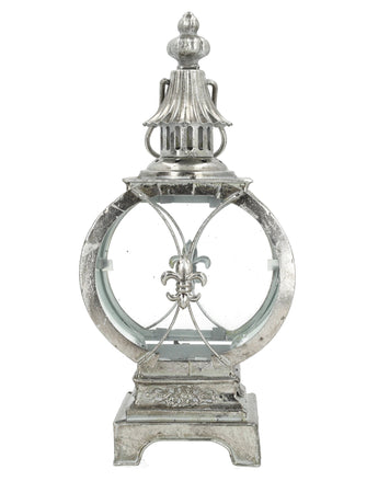 Esta bela lanterna de cor prateada apresenta uma forma arredondada refinada e tons suaves de cinza-prateado que trazem uma elegância calma a qualquer espaço. Projetada com quatro painéis de vidro, cria um brilho suave e atmosférico quando uma vela é acesa no interior. A sua forma equilibrada e acabamento intemporal fazem dela um elemento decorativo versátil para interiores modernos e clássicos.