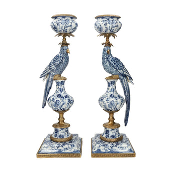 Castiçais de Porcelana com Pássaro | 58 cm / 23.2 in | Decoração de Luxo