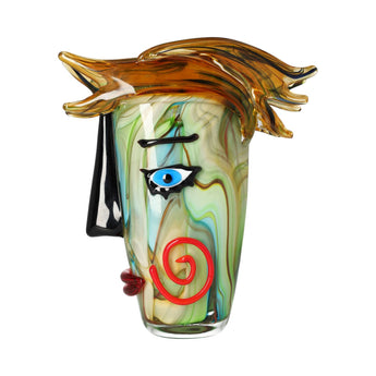 Vaso de vidro arrojado ao estilo Murano com rosto que traz arte lúdica e carácter moderno ao seu interior. O design escultórico do rosto é expressivo e contemporâneo, enquanto o acabamento brilhante em vidro adiciona um impacto decorativo luminoso. Perfeito como vaso de destaque ou objeto de arte independente numa consola ou prateleira.
